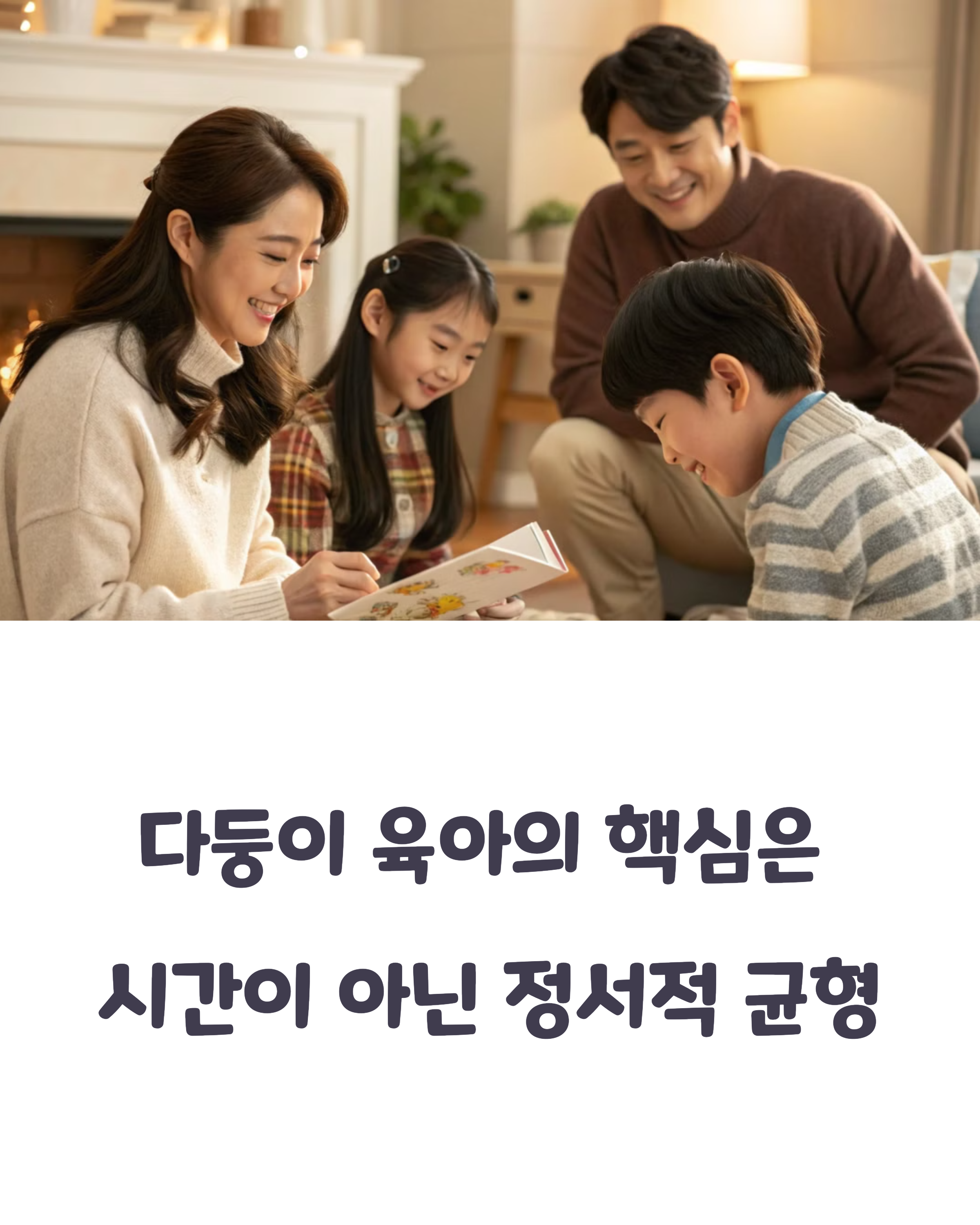 다둥이 육아의 현실 아이가 늘수록 부모의 에너지와 집중은 분산되기 쉽습니다.