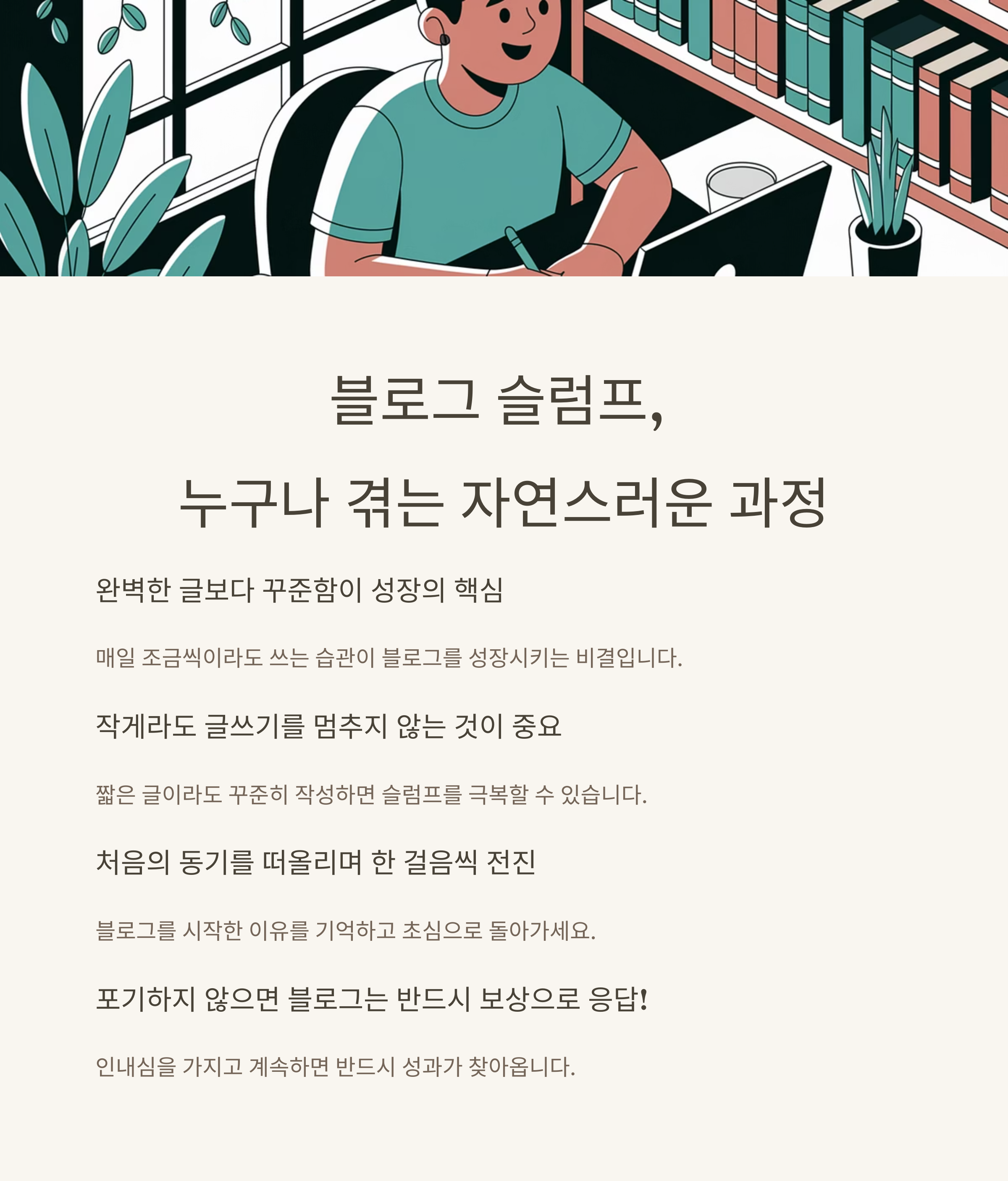 하지만 이 시기를 버텨낸 사람만이 블로그의 진짜 성장 구간을 만날 수 있습니다.
