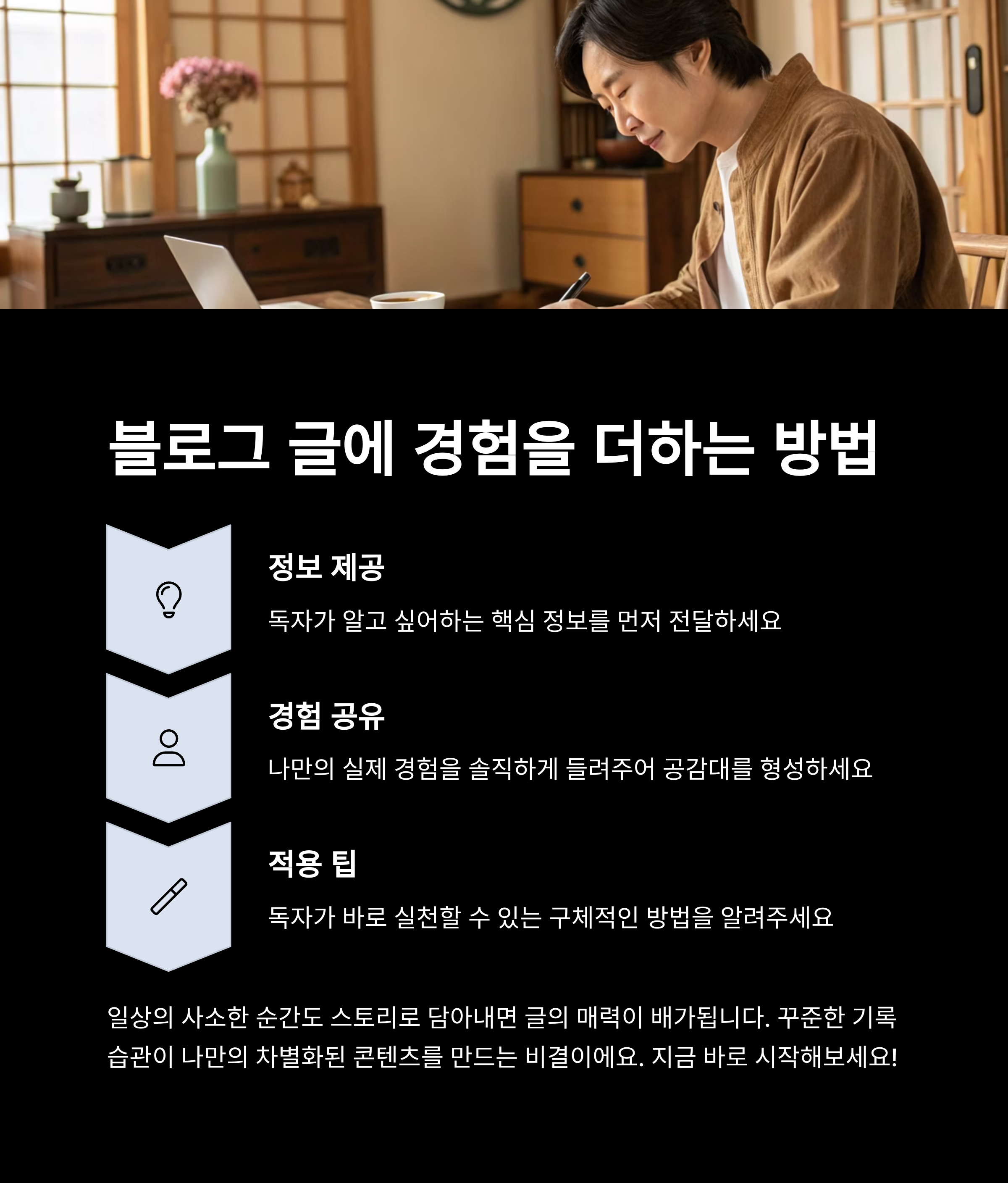 경험은 콘텐츠를 ‘살아 있는 정보’로 만드는 가장 강력한 무기입니다.