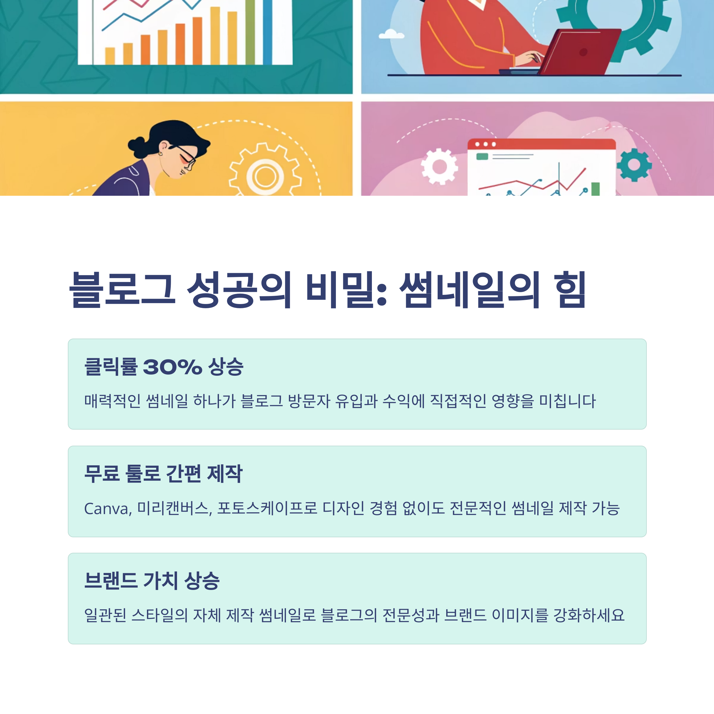 잘 만든 썸네일 하나가 수백 명의 방문자를 데려오기도 하며, 반대로 썸네일이 없거나 품질이 낮으면 아무리 좋은 글이라도 주목받기 어렵습니다.