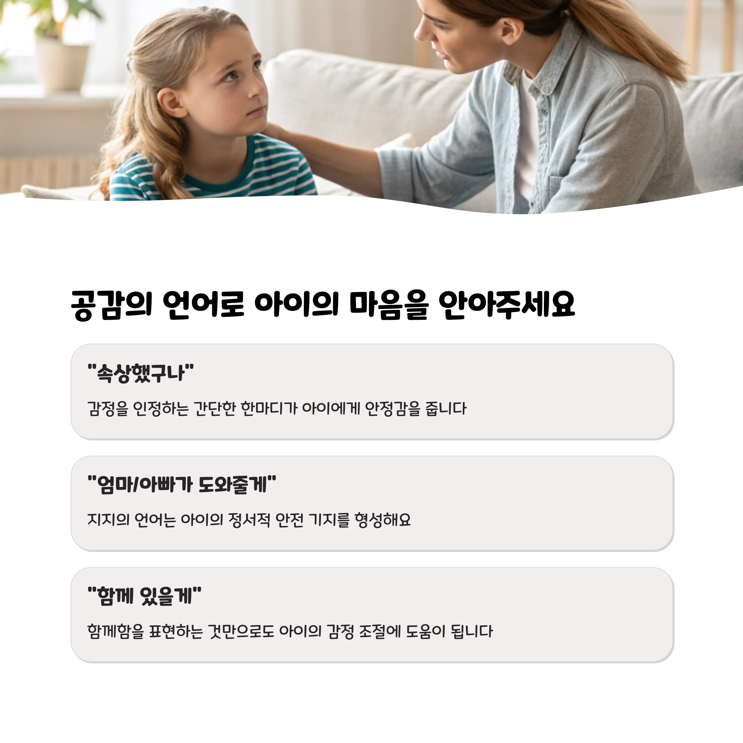 훈육보다 중요한 건 감정 공감입니다. 울음을 억제하기보다는 감정을 말로 설명해주는 연습이 먼저입니다.